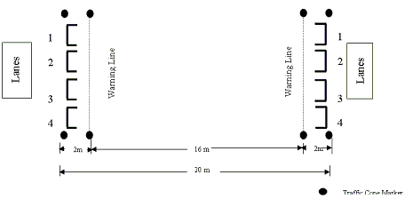 In each leg of the shuttle run, warning lines, placed 2 metres before each of the 20-metre end lines, must be reached before the permitted time elapses and the audio signal sounds. An examiner will caution you if you fail to cross a warning line in time. The test ends when you miss two consecutive warning lines.