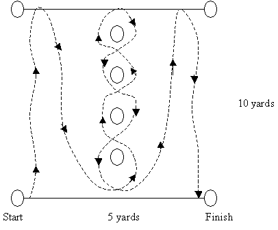 This is a timed test sprinting back and forth between lines and zigzagging around cones.