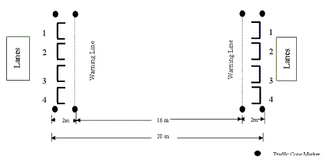 This test requies you to run around a 9.14 metre (10 yards) x 4.16 metre (5 yards) course of cones as quickly as possible. To begin the test, lie on your front with your head at the start line and hands by your shoulders. When you start the test you get up as quickly as possible and run in the direction indicated without knocking over any cones. This will measure your speed and agility.