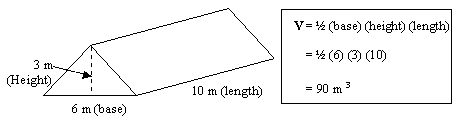 To calculate the volume of an object like the one below, first calculate the area of the triangle and multiply it by the height of the object.
